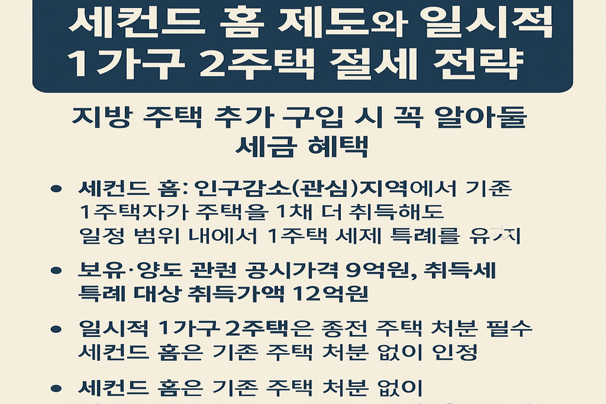 세컨드 홈 제도와 일시적 1가구 2주택 절세 전략 ─ 지방 주택 추가 구입 시 꼭 알아둘 세금 혜택